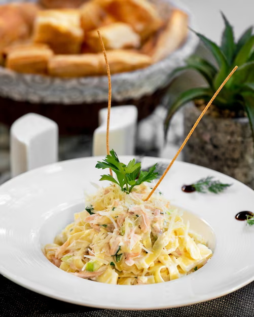 chicken, bacon, mushrooms, tomato, parmesan cheese, scallions,rich red wine cream sauce. Served with garlic bread